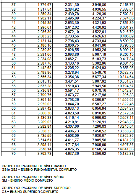 A tabela de que trata este artigo é a constante do Anexo IV, a qual será corrigida automaticamente, de acordo com a legislação aplicável.