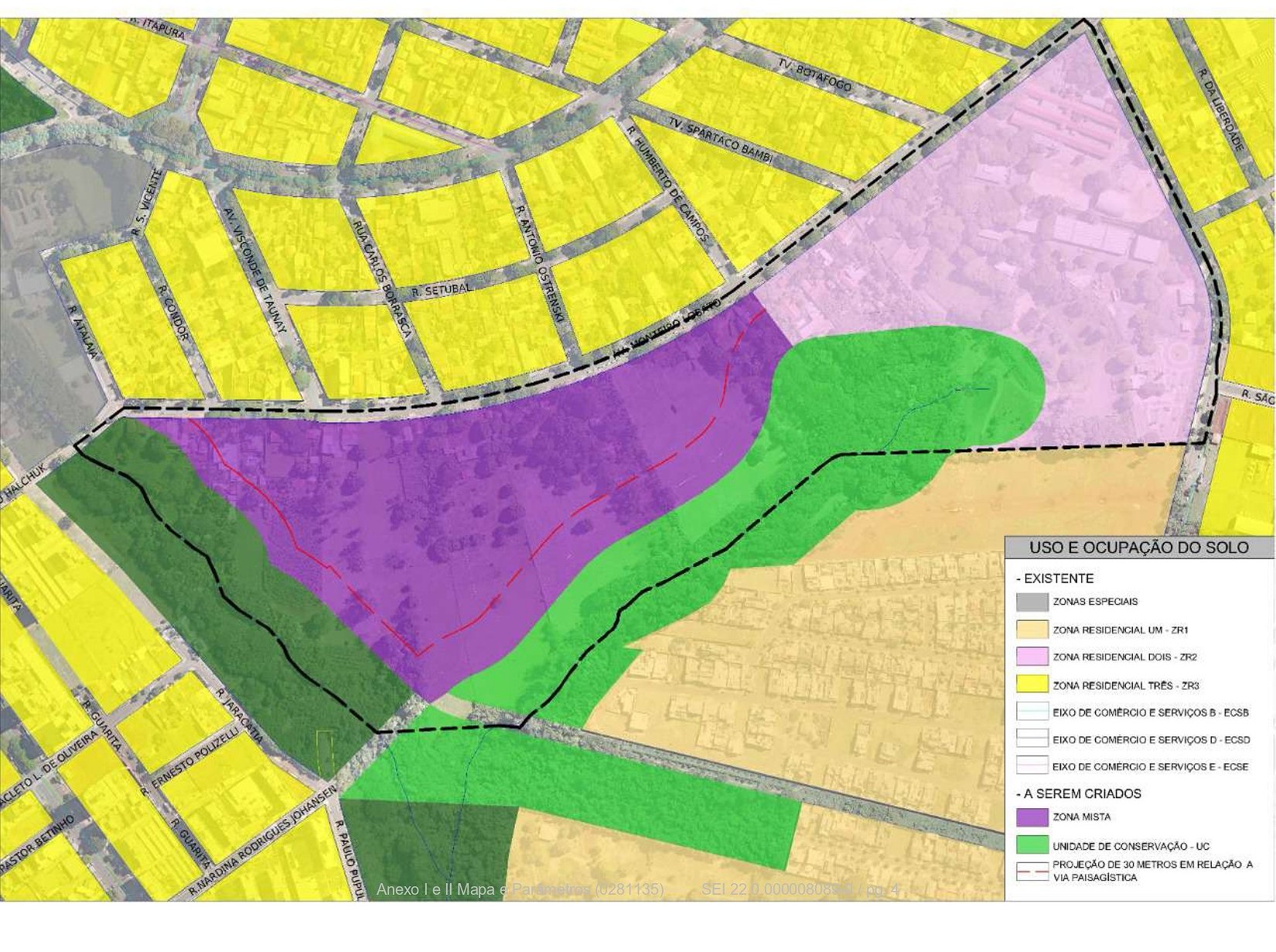 Zona Mista: zona de uso residencial concomitante ao uso de comércio e serviços que objetiva um aumento controlado da densidade populacional, o controle da paisagem urbana e a adoção de escalonamento da altura das edificações em direção ao fundo de vale.